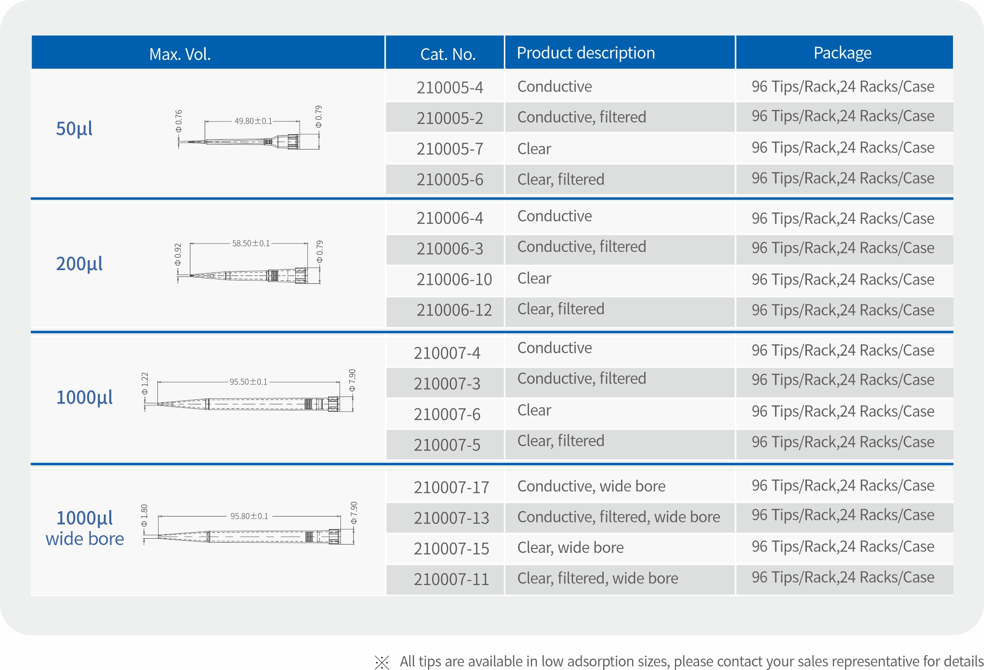 ※ High quality medical grade PP material is used to ensure that there is no additive precipitation or contamination of the sample during the sampling process ※ Fully automated production process, reducing manual intervention, improving product accuracy and consistency ※ The entire process adopts a 100% full inspection mode, covering the appearance (burrs, discoloration points), performance (resistance Perform comprehensive quality inspection on CV value, pulling force, and packaging ※ High cleanliness, no DNase /RNase、 No pyrogen ※ Accurate size, seamlessly compatible with automated workstations such as Freedom EVO
